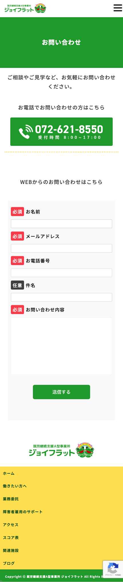 大阪府茨木市の就労継続支援A型 ジョイフラット様のホームページを制作いたしました。